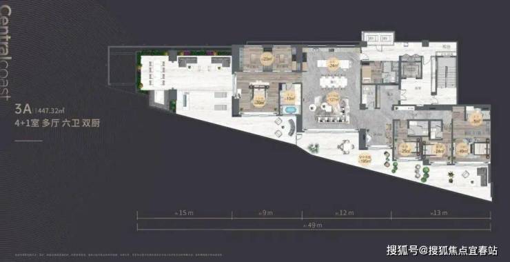 约49m横向观海面宽,大尺度环幕视野,户型方正、结构通透,值此尖峰人士的臻藏之选。