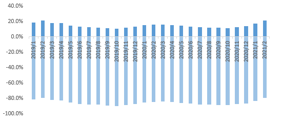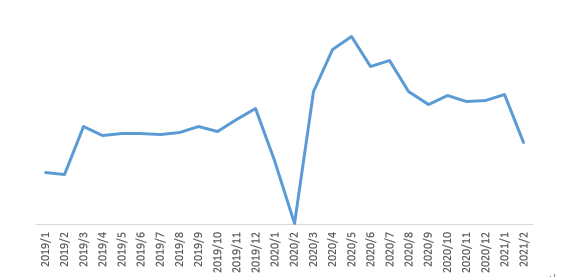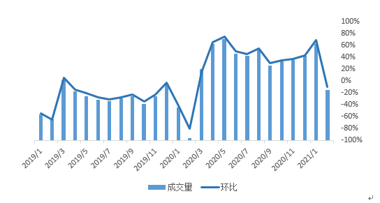 2月市场需求降低。据贝壳找房已售房源数据统计,二手房新增带看客户量呈现持续下降趋势,本月降低幅度较大,但同比2020年与2019年同期,仍处于高位上。由于季节性的反弹,3月“小阳春”现象或现,预计2021年3月济南二手房成交量出现拐点,成交量有望回升。