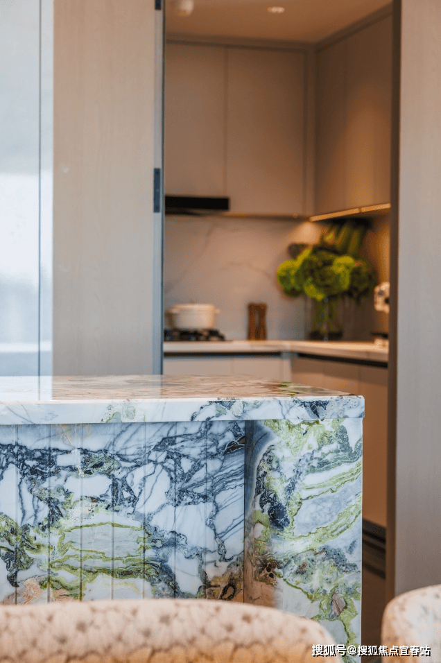 岛台采用的是冷翡翠大理石,清灵如诗,莹洁似玉,每一块都是独一无二的艺术品。
