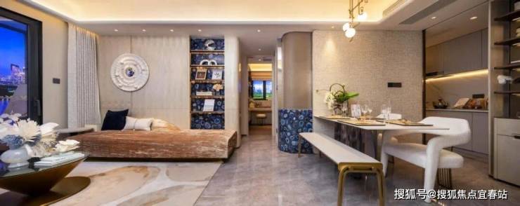 建面约128㎡的东南向望江大平层,以五开间朝南+16米采光面,让业主在不同生活场景下皆能享白鹅潭一线江景。