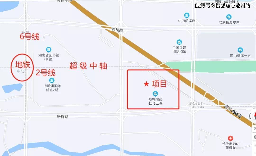 位于赏月路与梧桐路交汇处,拥揽四横五纵交通路网,紧邻梅溪仅有双地铁站-中塘站(建设中)。地铁2号线(延长线建设中)、地铁6号线(明年初通车)在此交汇
