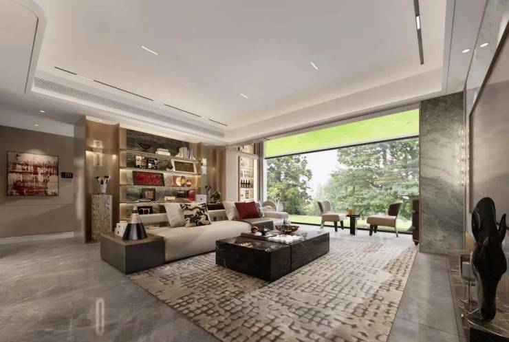 约3.3米层高,客厅开间超6米,双套房+三卫生间设计,且所有房间可放1.8米大床+双床头柜。
