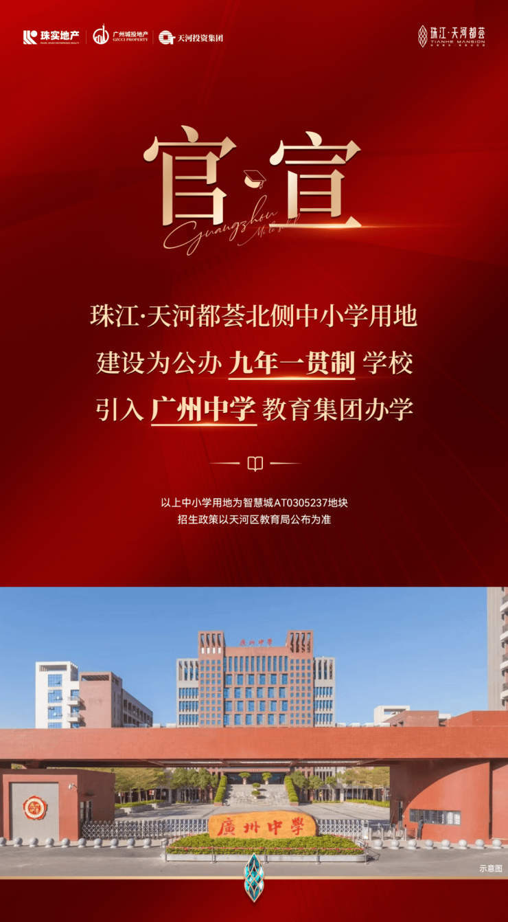 天河都荟未开盘就先正式官宣项目北侧中小学用地,引入广州中学教育集团办学。