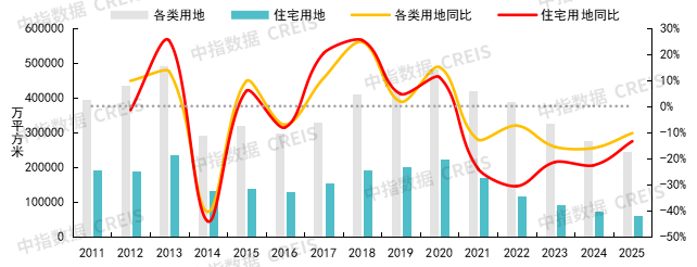 注:数据统计口径为公开招拍挂市场成交地块。自2025年起,中指数据扩大了300城土地覆盖范围,目前已涵盖全部地级及以上城市,历史数据为可比口径