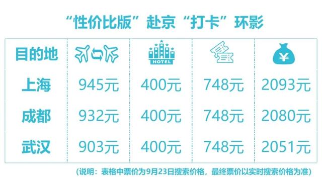 据去哪儿估算,十一假期赴京机票价格稳中有降。目前,预订从上海、成都、武汉等主要客源地到北京环球影城打卡的游客,花销更低,包含机票、酒店和门票费用的人均消费约2000元。