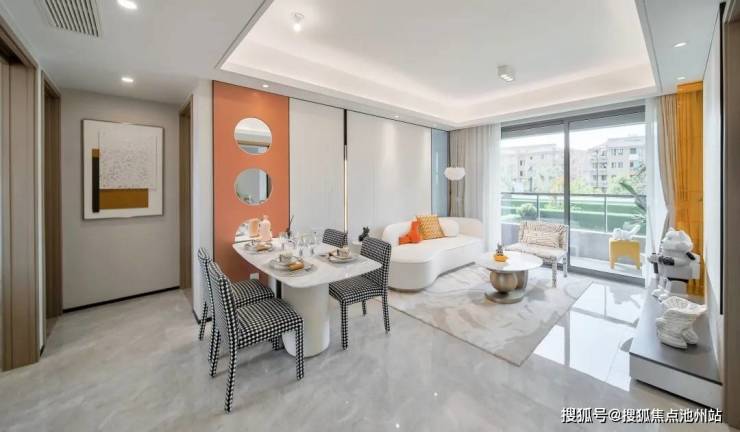 一体化餐客通厅,连接盛景阳台,闲暇时,孩子在客厅弹奏钢琴,父母在厨房准备晚餐、老人在阳台莳花弄草,置身不同空间,家人却可以视线相交、亲密交谈。