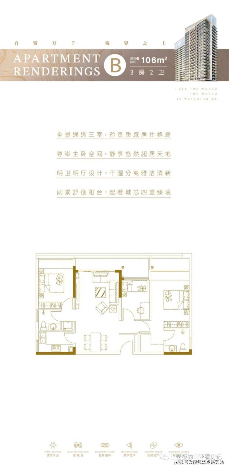 紧邻三亚中央商务区,南面大东海,北面迎宾路,东靠凤凰岭,西面三亚湾、大东海双湾交汇,门前是三亚的母亲河:临春河和三亚河,尽占城芯地利,矜贵地脉,以城芯、半山、瞰海、临河的天际视野,著写当世向往。