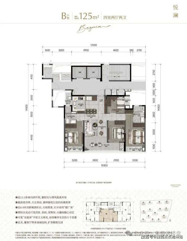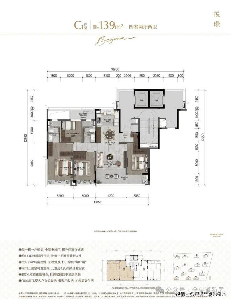 产品类型:纯改善住区,建筑面积约125㎡、139㎡、168㎡精装户型。