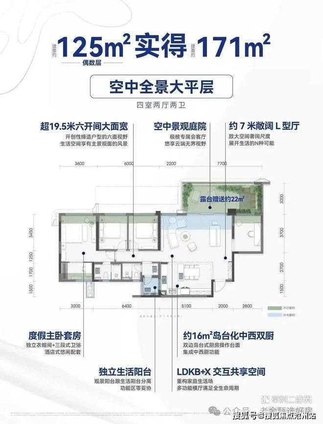 •实得面积:171㎡(赠送率达37%)