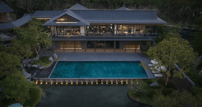 社区有万亩湖山景观资源、周边有花莞高速等6 条高速路、7 所学校及 8 大商圈等一系列醇熟城市配套资源。业主穿行于园林之间,移步异景,山景、绿植、溪流、草木、叠石等元素自然融合、相映成趣,可游可赏,犹如在山水画中穿行,简直不要太诗意!