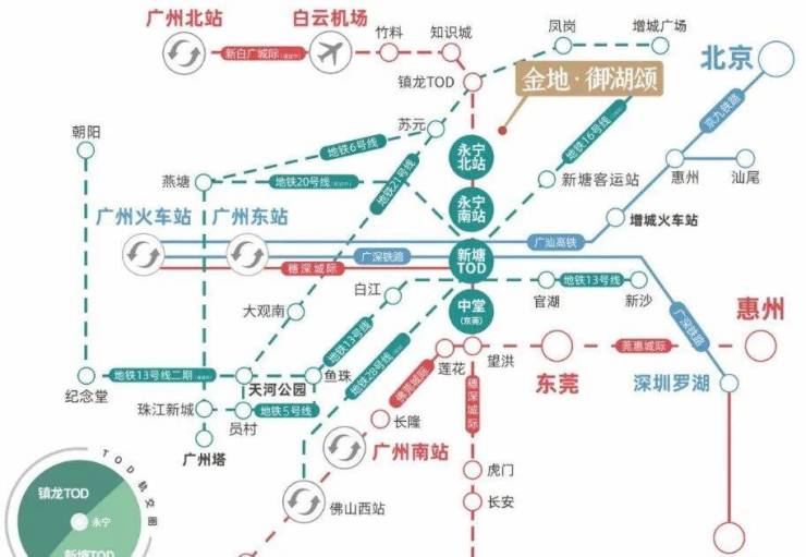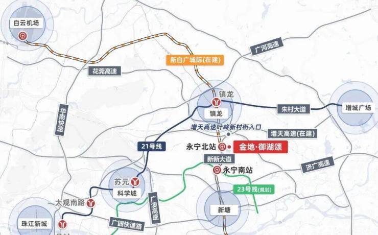 未来可便捷通达珠江新城,畅通大湾区各大核心城市,未来永宁北站(在建)开通后,可以实现1站镇龙TOD、2站科学城/新塘TOD、3站达天河/东莞、快速通达深圳。