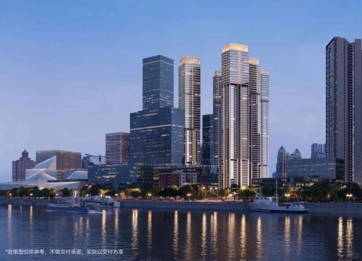 在建筑造型上,融合岭南骑楼形态与曼哈顿第五大道520号的细节设计灵感,勾勒出典雅大气的三江环幕地标。塔顶设计致敬经典的白天鹅酒店,以 45° 倒三角形状构建出极具辨识度的“城市天际线符号” 。首层抬高约14米,缔造低层私密化体验,并以90%窗墙比、超270°景观视野,实现对稀缺珠江生态资源的独家收藏。