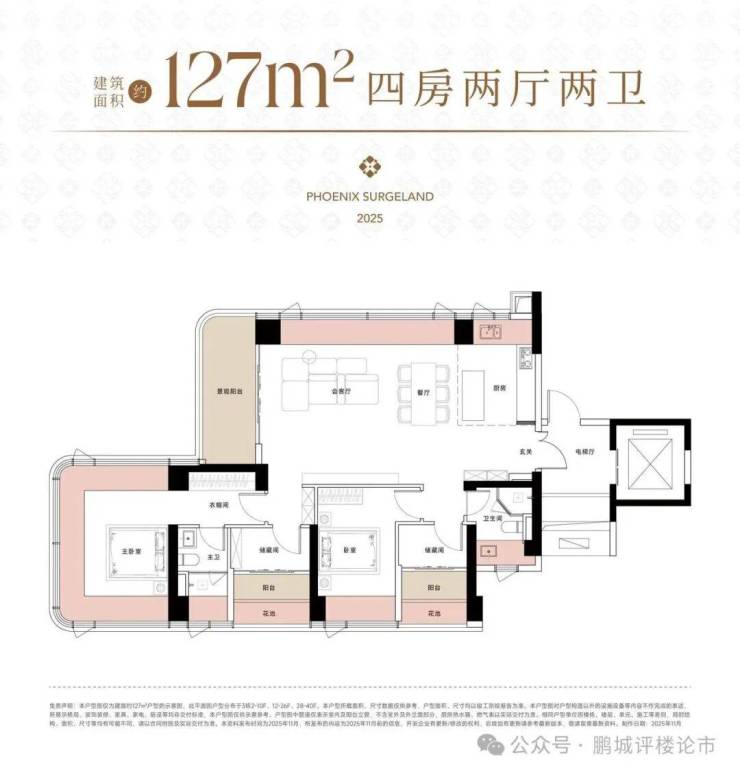 真纯粹:约127-300㎡新规改善大宅,四房占比超87%,主力户型专梯独户,尽享纯粹圈层生活;
