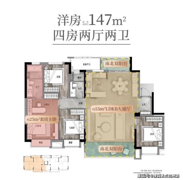 以建筑面积约147㎡的户型为例,这款首批次热销清盘的“明星户型”,可以说将“迭代洋房”的产品内核演绎得淋漓尽致。