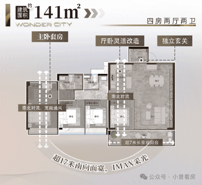 在售的主力户型以四居室为主,包括建面 105㎡、122㎡、141㎡、186㎡等多种规格。