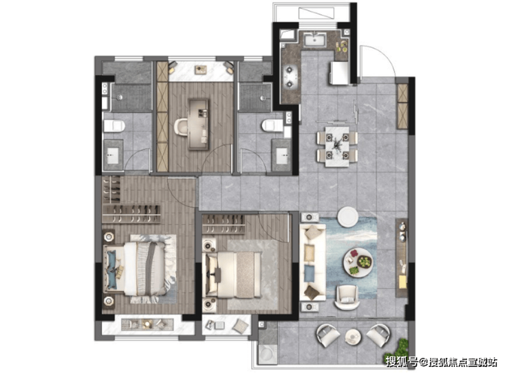 同时该户型还带大尺度阳台;以及步入式衣帽间,给予生活更多从容。
