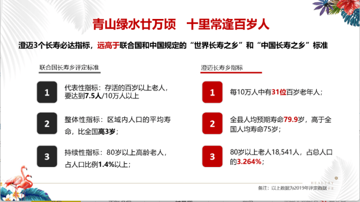 澄迈3个长寿必达指标,远高于联合国和中国规定的“世界长寿之乡”和“中国长寿之乡”标准