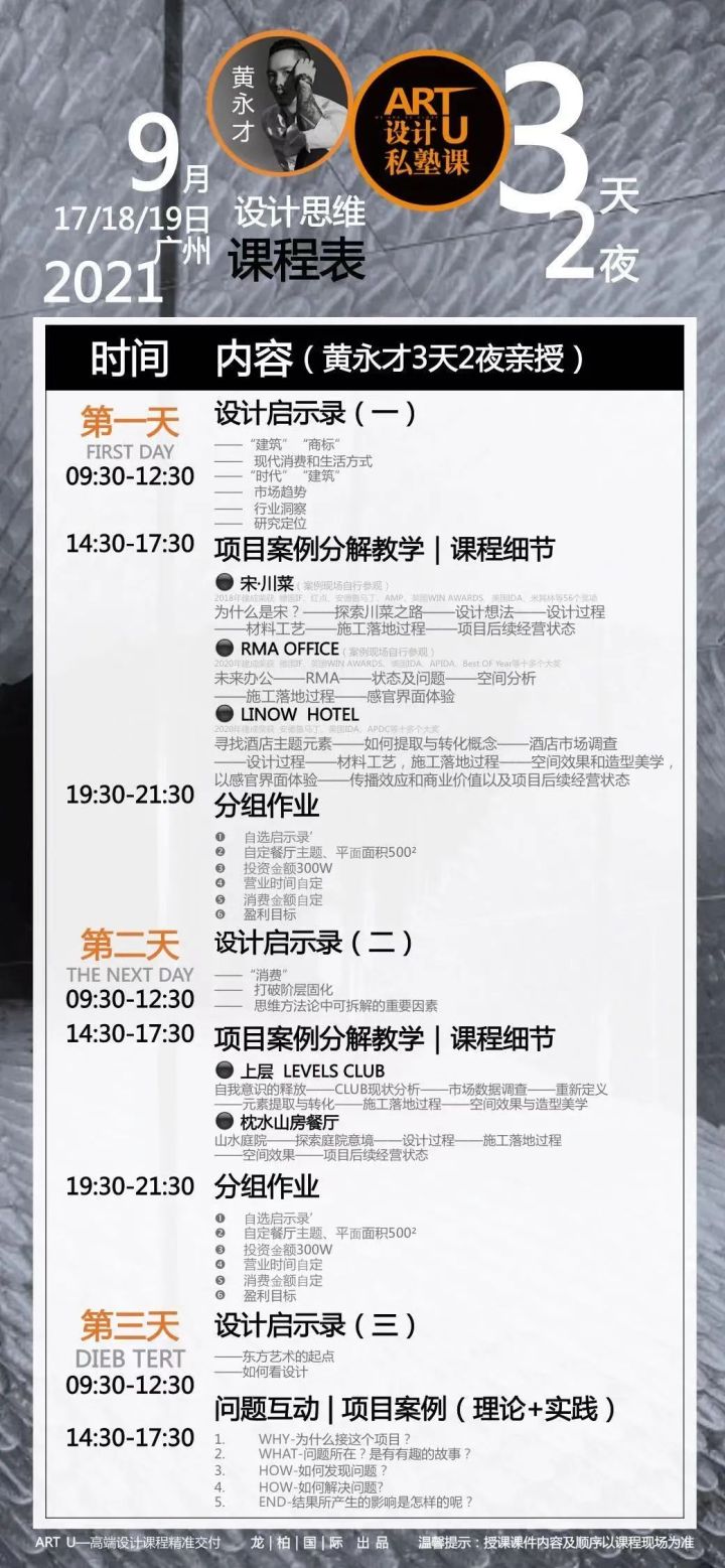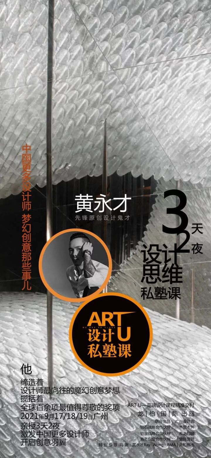 黄永才从不定义自己是设计师,而更像是一个生活观察者&空间导演,在“ 标准化+ 模仿 ”成风的设计江湖,他的先锋&原创设计,却鬼才般同时带来艺术感官刺激&巨大商业成功! 2021年9月17/18/19日·广州亲身传授 3天2夜:设计思维 用项目分解教学的方式并携学员进行项目复盘、分组作业及答疑解锁创意型设计的“道与术” 激发中国更多设计师面对梦幻创意那些事儿开启创意羽翼 黄永才[设计思维]课程表: