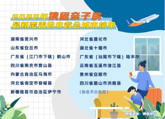 今年以来,携程平台上带有“亲子”标签的可预订房间数量同比增长两位数。随着亲子房产品覆盖面的拓宽,包括湖南省资兴市、山东省安丘市、湖北省十堰市、贵州省安顺市在内用户,也将在今年秋冬的本地旅游市场,首次体验到携程亲子房产品。