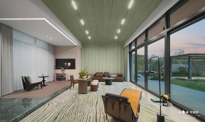 轻量化的建筑理念,让绿城·安屿湖的立面成为了一道独特的风景线。玻璃与格栅的巧妙组合,搭配温润的木饰面,既展现了现代建筑的简约美,又透露出与自然和谐共生的温馨氛围。轻盈的线条勾勒出窗的轮廓,如同画框一般,将户外的美景一一框入室内,让光线与风景自由穿梭,无拘无束。