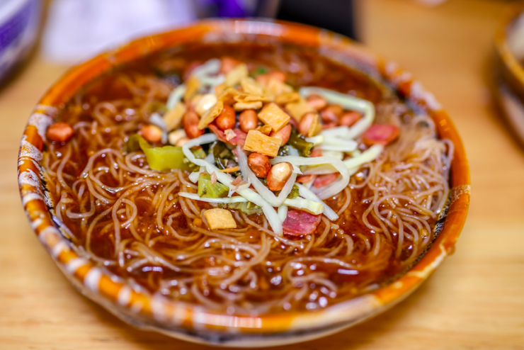 走街串巷,在椰城逛吃,清晨在海口的小巷里,一把热腾腾的腌面盛进简单的宽口白瓷碗,淋入鲜香的酱汁,撒入炒熟磨碎的黑、白芝麻和香油,加入一把炸得香脆的红皮花生米,一把酸菜,再放入嚼劲十足的牛腩,一碗海南招牌的牛腩腌面透着咸香,伴你开启一天的生活;下午钻进茶楼,看里面聚满街坊,伙计们提着一壶壶开水在桌椅间大步穿梭,往飘散着菊花香味的茶壶里注水。喧嚷的大堂里满是心满意足、大快朵颐的食客,桌面上摆放着各色点心诱人喷香;走在深夜的三亚的老街,点一份散发鲜香的炖盅,一碗下肚,整个人都热了起来,额角萌出密密的细汗。“老海口”们一直坚信,这种热气能逼出人们体内的湿气,给生活带来美味的平衡。