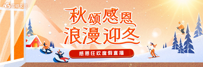 秋颂感恩,浪漫迎冬,11月25日,狐椒撒欢游“感恩狂欢度假直播节”将再度震撼来袭,温情回归用户,掀起仲冬霜月狂欢浪潮。