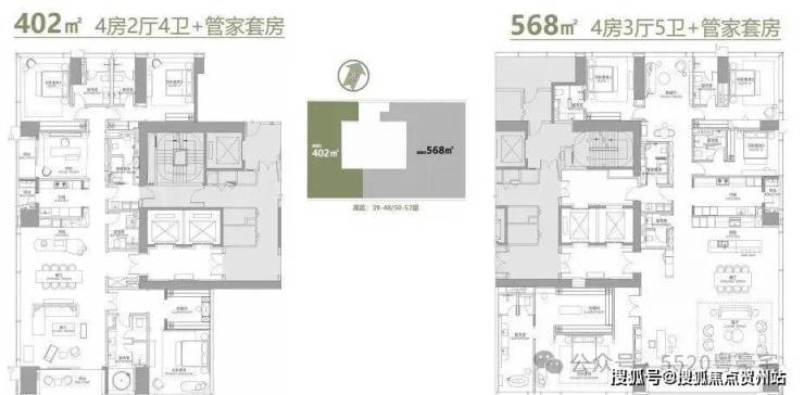 项目推出的304㎡、327㎡、402㎡三大主力户型,还有规划的568-1032㎡定制大平层/复式与35栋商墅,适配家族居住、企业总部接待等多元需求。户型设计以多套间、家政套间、高得房率的特质,重新诠释顶豪的居住本质。