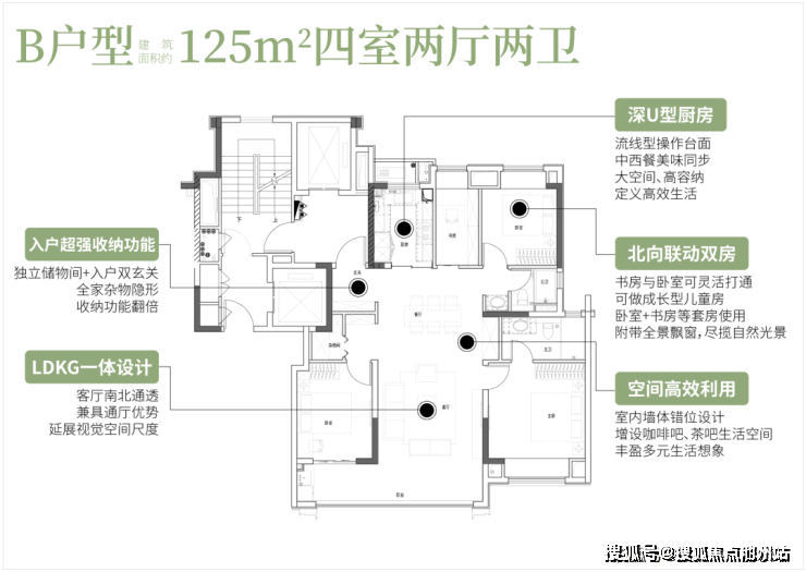 成长型家庭优选——建面约125㎡四室两厅两卫