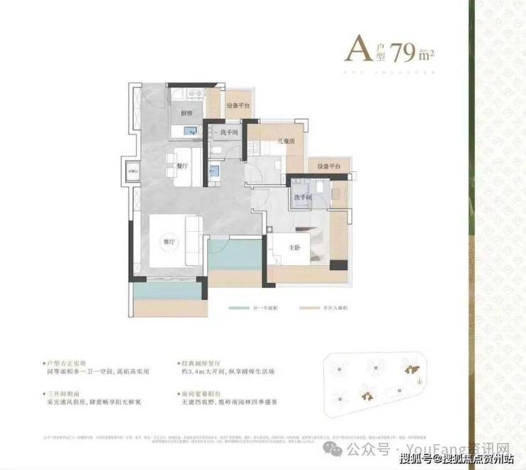 即将首发入市的是一期3栋、5栋的产品,大约368套,建面79㎡3房2厅2卫、约89㎡3房2厅2卫、约99㎡4房2厅2卫、约119㎡4房2厅2卫,共四种户型。