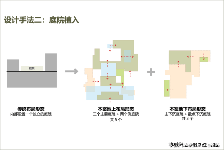 丽香庭借鉴古典入园空间序列,打造多重院落、层层递进的归家礼序。地块整体抬高约3.7米,最大高差超过7.5米的下沉庭院,以微妙的视觉层次划分功能空间,通过散点布局、小空间组织,消解空间中心;自然山水垂直铺展,形成多维“立体庭院”。游廊曲折、台地错落,行走其间,循着自由灵动的立体游园路径,忘园入画,化境归心。