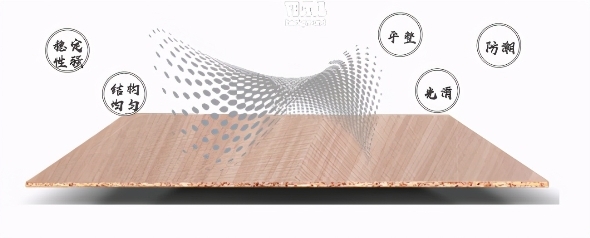 选用国际严格的F4星健康标准,甲醛释放量不超过0.3mg/L,可在室内不限量使用。板内木质纤维颗粒较大,多为交叉错落结构的颗粒状,能更多地保存木材的天然质地。严格的甲醛释放量控制标准,先进环保水平,基材表面均匀细腻、平整光滑,结构均匀,物理力学性能指标优良,厚度偏差小,规格多样,防潮性能优越,吸水厚度膨胀率指标优于国标标准,适宜各类表面装饰加工。
