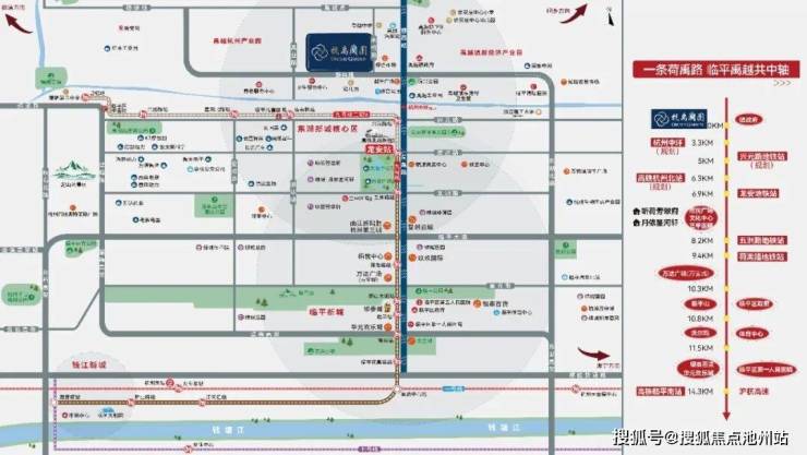 项目毗邻荷禹路,快速通达杭州秋石高架、东湖高架等快速路及练杭高速,向北可到新市武康,市内及省内通达性佳。教育配套包括徐家庄中心幼儿园,徐家庄中心小学,禹越镇初级中学等。休闲配套有越丰广场,振兴公园,体育公园等。而医疗配套包括镇卫生服务中心,东湖新城规划三甲医院等。