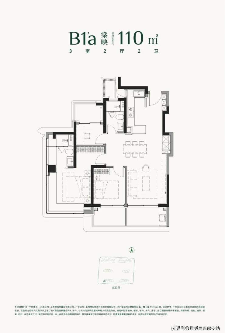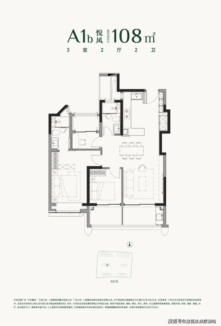 建面约110㎡的3房户型均是边套,在108㎡产品的基础上,还多了主卧的约270°宽景飘窗,实得率更高,采光以及视野的表现也更加出色。