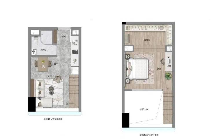 上下两层均可打造成独立套间,餐厨、卫浴、收纳、工作、休憩功能一应俱全。
