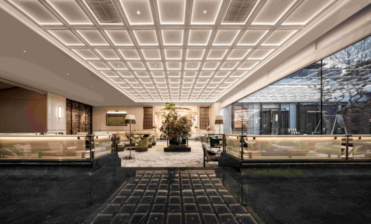 每处公共空间均秉持高端定制酒店的设计理念,精选全石材背景墙、宽阔金属吊顶、精致地面拼花,尽显奢华气息而不张扬。即便园内每一棵树木,亦是精心挑选,源自各地,如拥有30年树龄的朴树、铁冬青、珍稀紫薇等,共同营造出一片生机勃勃、绿意盎然的生态美景。