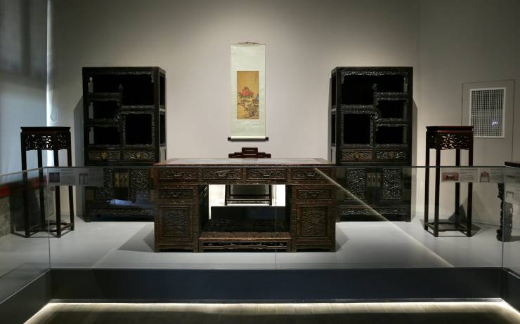 中国传统家具展则借助馆藏明清至民国的40余件家具,展现中国传统家具不同时代之美。王丹介绍,“2017年以前,方丈院还是大杂院,经过腾退修缮,目前作为家具馆,展出明清、民国时期具有典型特征的家具,没有设置展柜,观众可以获得沉浸式体验。你可以看到修复它们的工具,还可以亲手掂一掂不同木材的分量。”