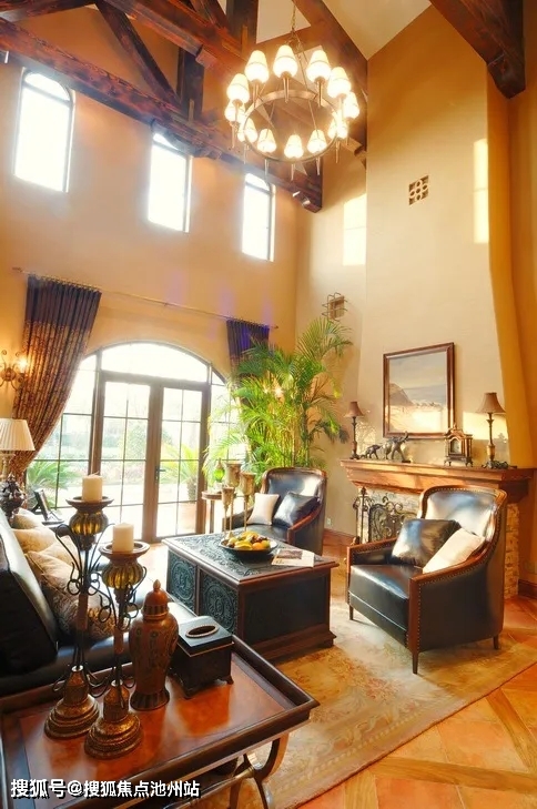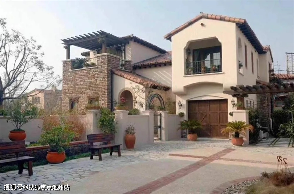 【同润圣塔路斯】采用美国南加州的建筑风格,外立面采用淡黄色的手工Stucco抹灰外墙和红瓦屋顶,将原汁原味的南加州风格复刻至此,同时融入原木、三色瓦片、红砖、铁艺、各式烟囱等元素,渗透一砖一瓦,仿佛置身异国小镇。