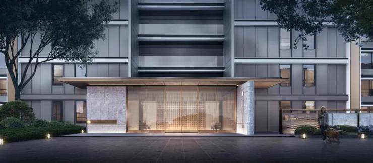 古人言“宅以门户为冠带”,门是一种礼仪制度的象征,更是宅第品格修养的表现。海上瑧悦,单元门头整体和小区入口大堂呼应,两侧采用大象灰石材哑光面和拉槽面,门头金属条纹的细密程度拿捏地恰到好处,在细节和光影设计上做了整体东方格调的把控,层次细腻、典雅大方。