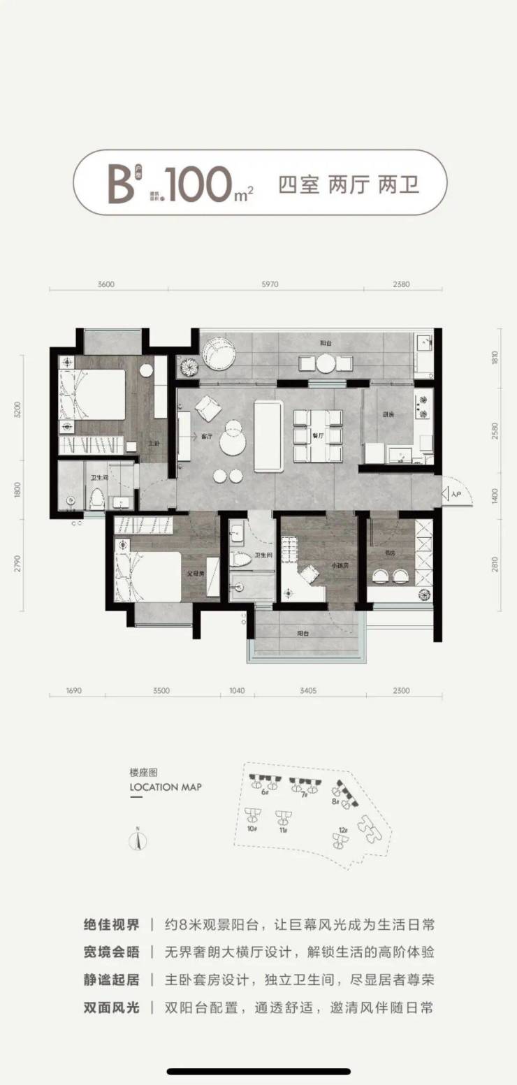9.【三亚绝版 极致稀缺】82㎡三房,99㎡四房,超高得房率,270度观景面,观山阅景,尽显从容。二梯四户,纯板式通透式设计,户型方正,全屋品牌精装,尽享三亚生活。