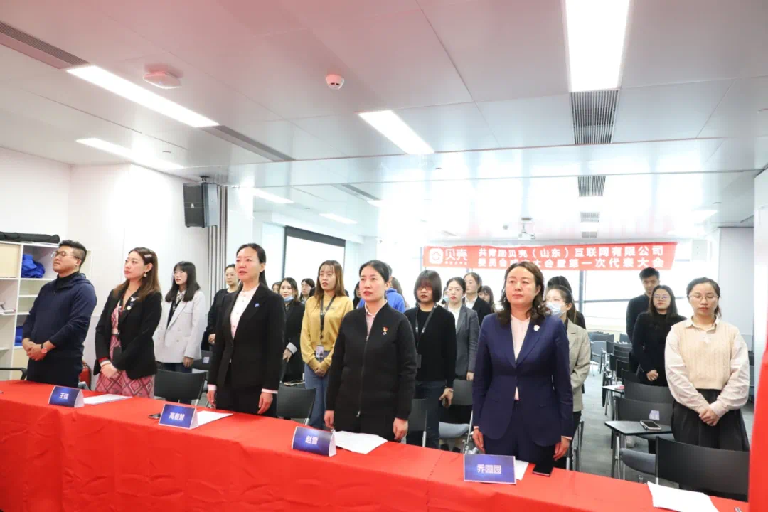4月25日上午,贝壳(山东)互联网有限公司团委成立大会在济南举行。来自贝壳鲁西省区总经理高春慧、职能中心负责人以及50余名青年员工参加会议,会议通过选举方式选举排名前列届团委委员,贝壳找房鲁西省区人力行政中心负责人、中共党员王佳选举为排名前列届团委书记。