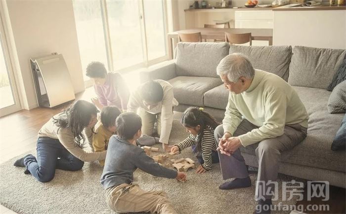 午饭时分,看着孩子和父母在客厅嬉戏玩闹