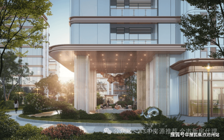 超流体弧形立面、360°钻感玻璃环幕精研现代主义美学立面、超流体弧形立面、360°钻感玻璃环幕,对标世界一线豪宅