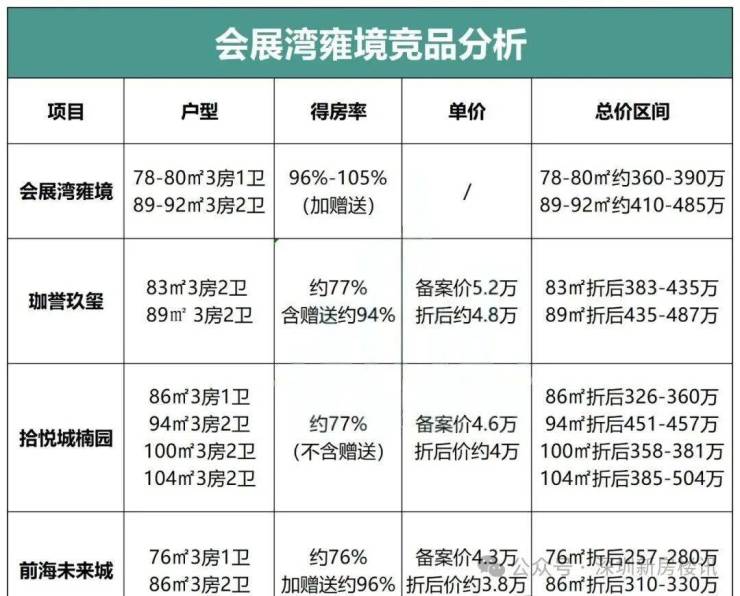 招商会展湾雍境名邸,由招商集团打造,总占地面积约2.52万㎡,总建筑面积约16.95万㎡,计容建筑面积约11.76万㎡,容积率4.3,分2个地块开发,共由6栋总高26-31层高的住宅组成,其中1栋1单元公租房26F,1栋2单元自持租赁30F,1栋3单元/2栋住宅31F,3栋/5栋住宅32F,4栋是1所9班制幼儿园。