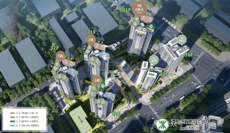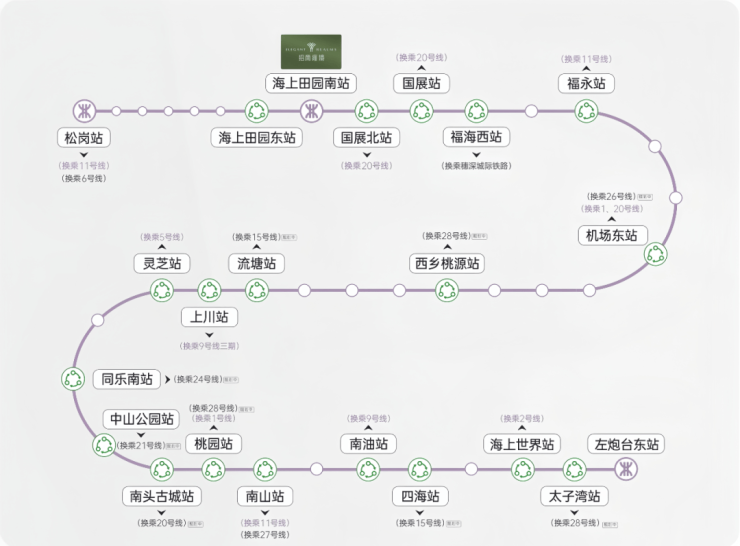 交通配套:项目出门就是12号地铁线“海上田园南站”,1站到国展北可换乘20号线,5站到福永可换乘11号地铁线,公路方面,距广深沿江高速入口仅500米,15分钟直达深圳湾;深中通道30分钟可至中山,1小时通达东莞滨海湾。此外,项目步行5分钟可达福永码头,乘船30分钟直达香港中环;距深圳宝安国际机场仅8公里,适合高频差旅人群。