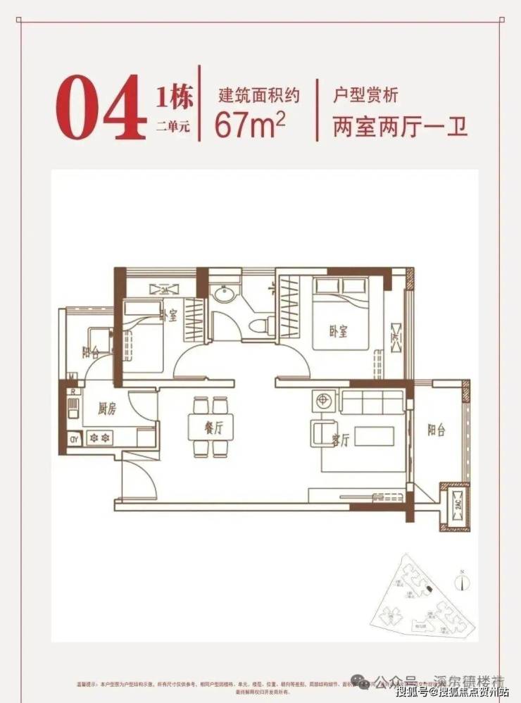 💎约67㎡两房:东南朝向,片区内唯一在售2房