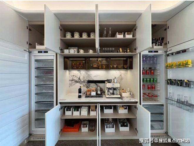 以绿城·沁百合约181㎡户型为例,全屋收纳空间约15m³(相当于300+个登机箱),入户玄关就有两组超大通顶收纳柜,钓鱼杆、宝宝推车、行李箱、鞋子等全都安排妥当。厨房不只有上方柜体拉篮、下方碗篮抽屉、调料抽拉柜,水槽下面的还专门做了一个下翻抽……每一处考究,都是人本的思量,只为回应当代家庭的真实改善需求。