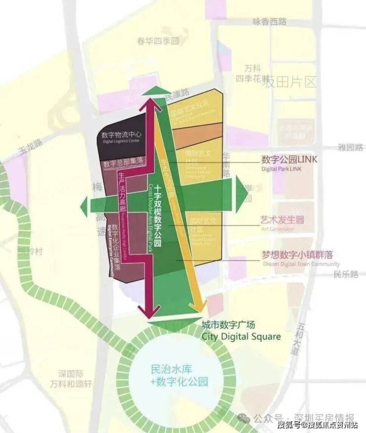 龙岸君粼所在的龙华民治板块,正处于快速发展阶段。周边有多个大型产业项目正在或即将建设,包括占地60万㎡的深国际·华南数字谷,主要布局特色软件、人工智能、工业互联网三大数字经济产业。