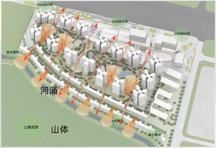 项目的楼栋设计十分注重南向河景+山景的搭配,从而提升项目的景观价值。