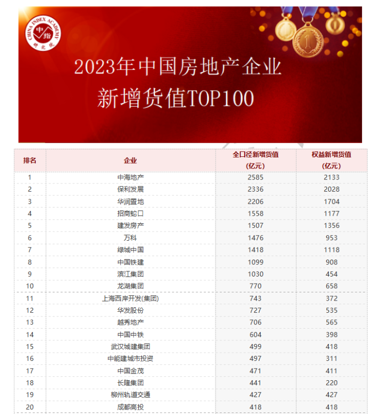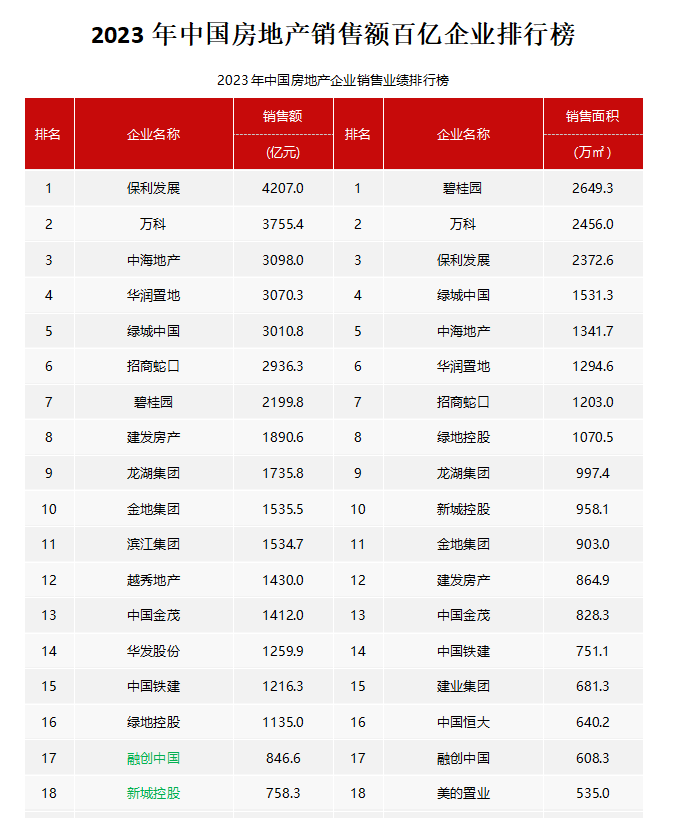 2023年百强房企排名出炉:千亿房企减至16家,"保万中"位列前三,碧桂园跌至第7位