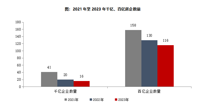 根据中指研究院发布的《2023年中国房地产企业销售业绩排行榜TOP100榜单》, 2023年TOP100房企销售总额为62791.0亿元,同比下降17.3%。2023年内,销售突破千亿元的房企共16家,较去年同期减少4家,百亿房企116家,较去年同期减少14家。